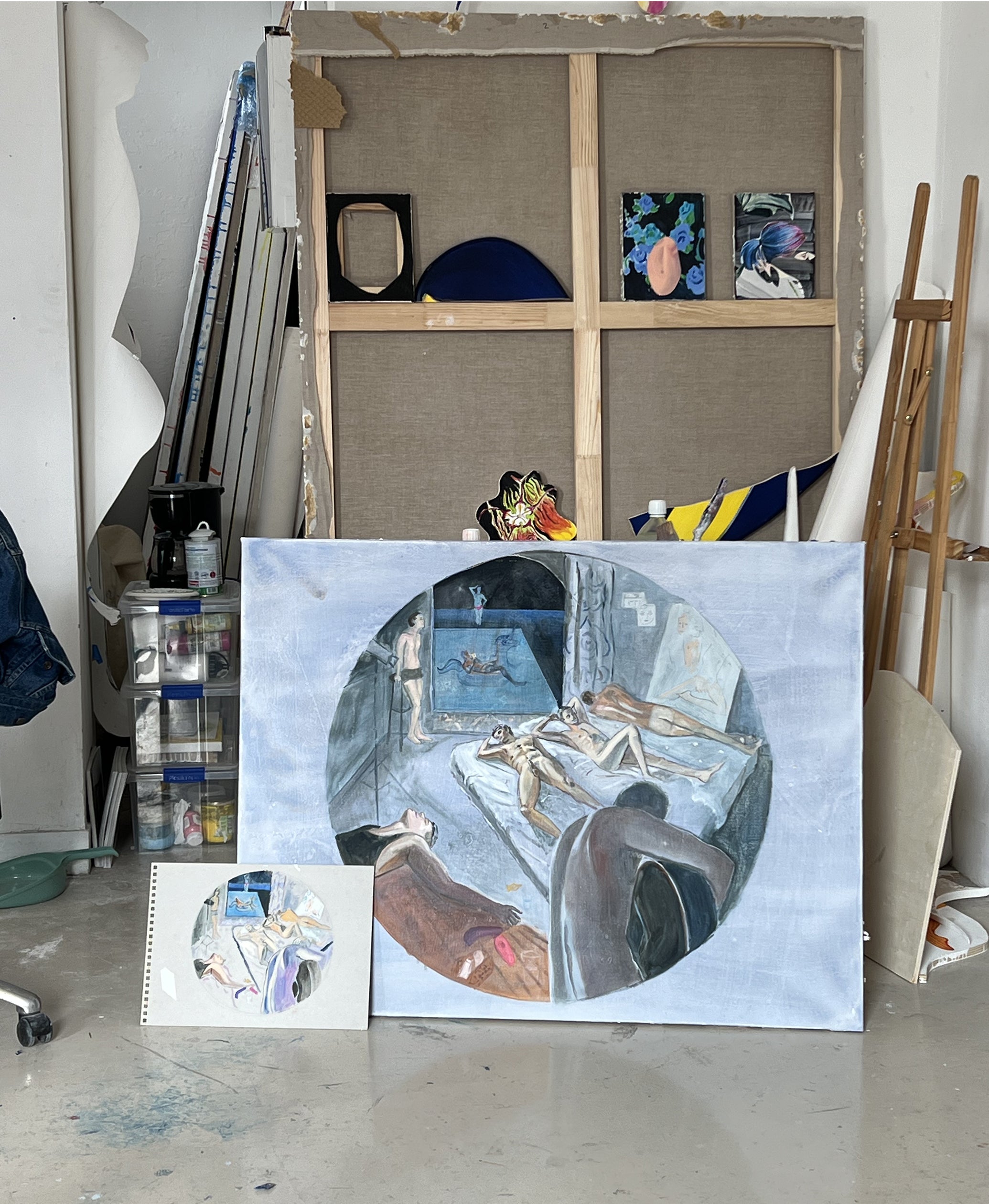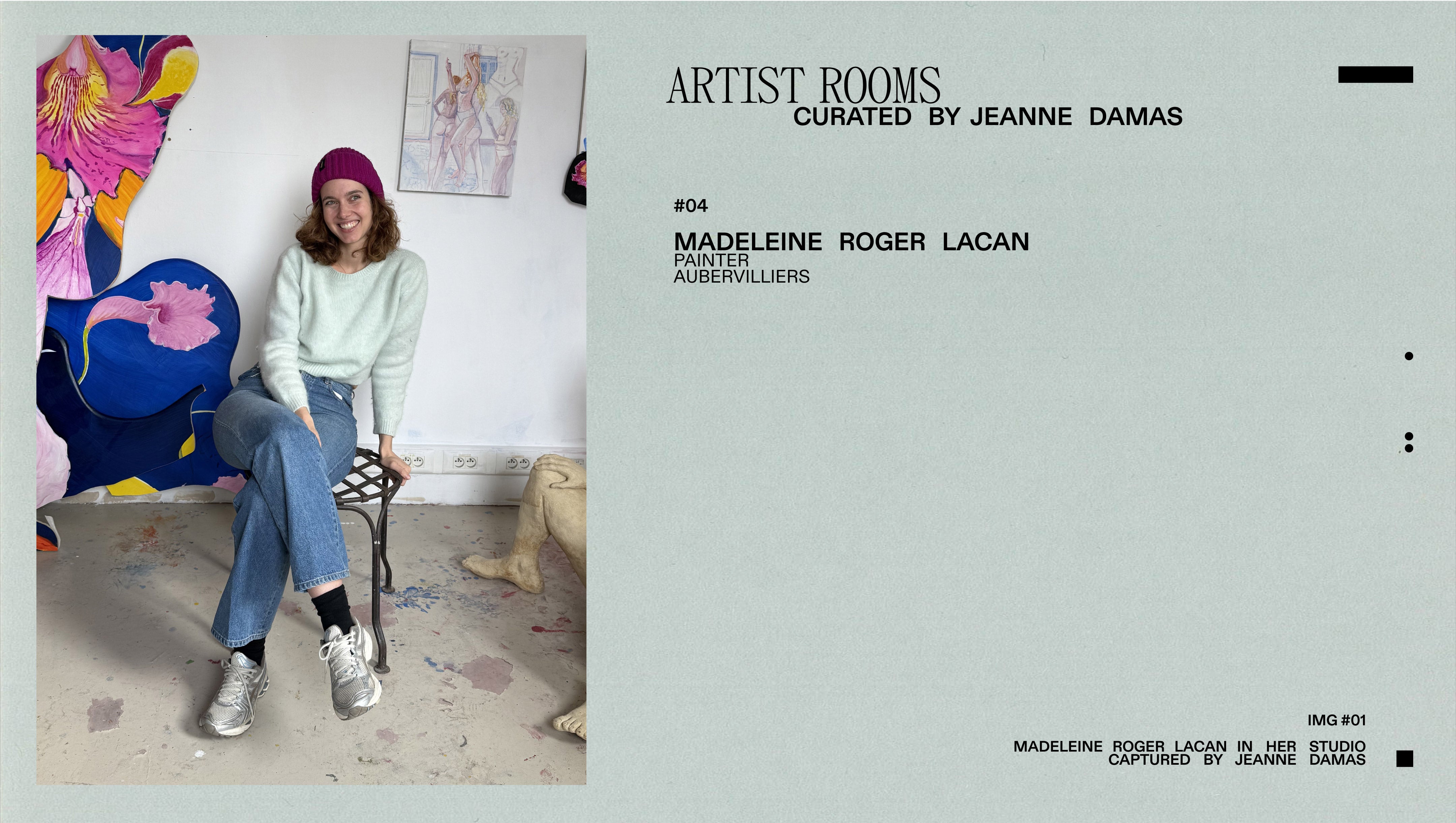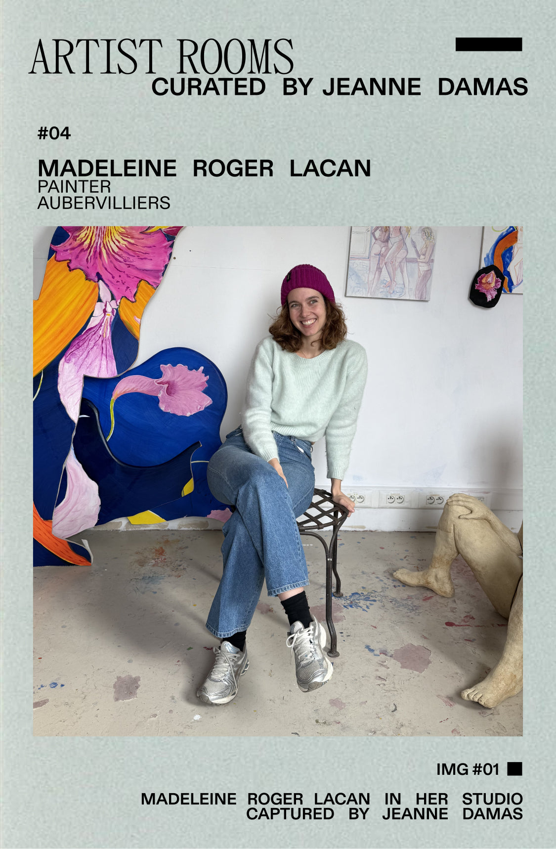 Madeleine Roger Lacan is a painter based in Paris. A graduate of the Beaux-Arts de Paris, she is preparing a group exhibition at the Centre Pompidou Metz this summer, as well as a solo exhibition in Paris in October. Jeanne Damas met her in her studio at the Poush collective.