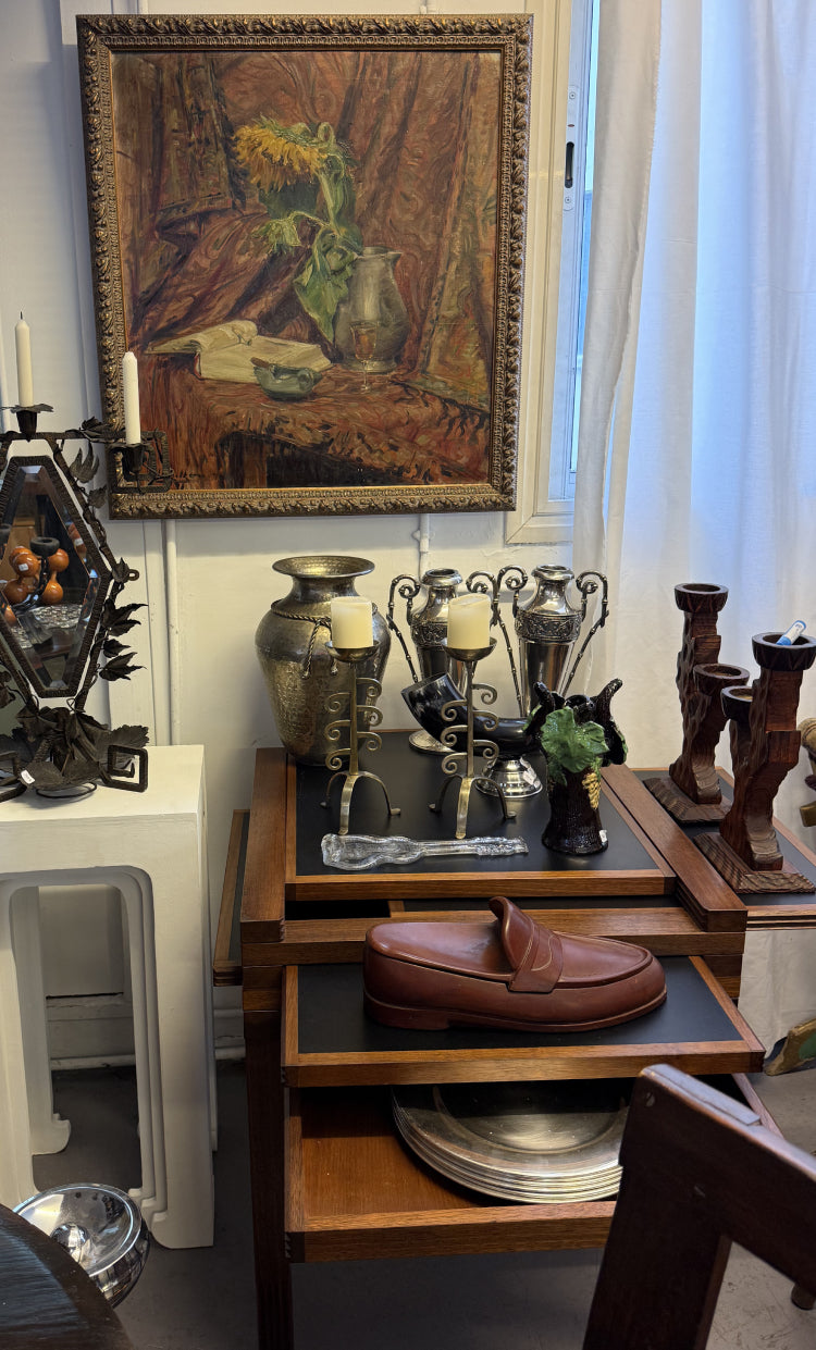 AB: My name is Antoine. I sell antiques and vintage objects, furniture and other items. I have been doing this for four years. Before that, I was already buying furniture. I worked for a scarf brand, and also for a perfumer, where I was in charge of store layouts for a long time.