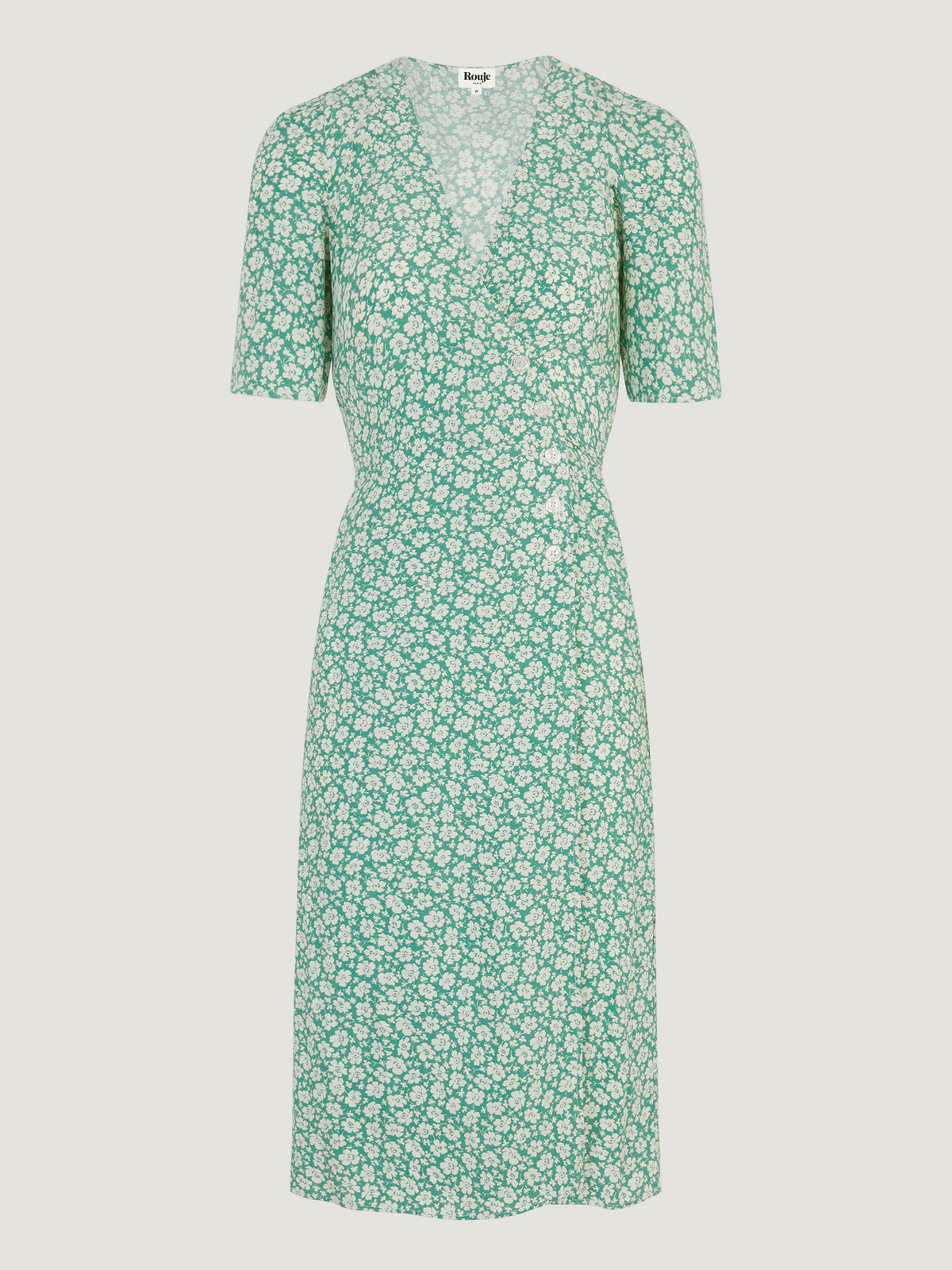 Si une robe Rouje se reconnaît au premier regard, c’est grâce à son tombé impeccable et ses coupes inspirées des silhouettes vintage. La célèbre robe Gabin, avec son jeu de cache-cœur flatteur et sa ligne fluide, incarne à la perfection l’ADN de la marque. D’un simple ruban noué à la taille naît une silhouette aussi romantique que moderne emprunt d’un esprit rétro. Les modèles comme la robe portefeuille et la robe patineuse s’imposent comme des incontournables.