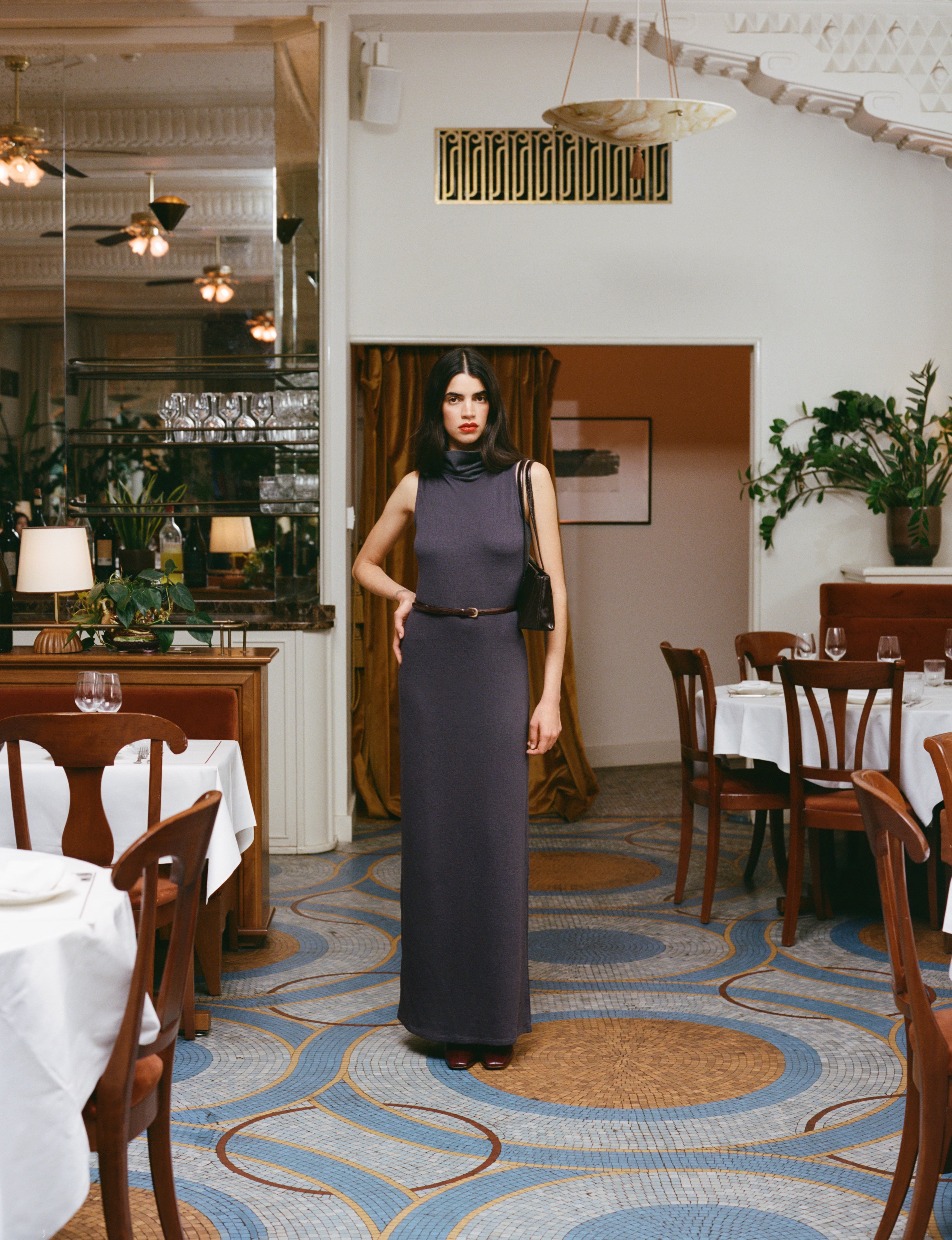 Dresses take center stage in printed satin, sumptuous velvet, the Baiser de Nuit motif, or with delicate rose-gold accents.