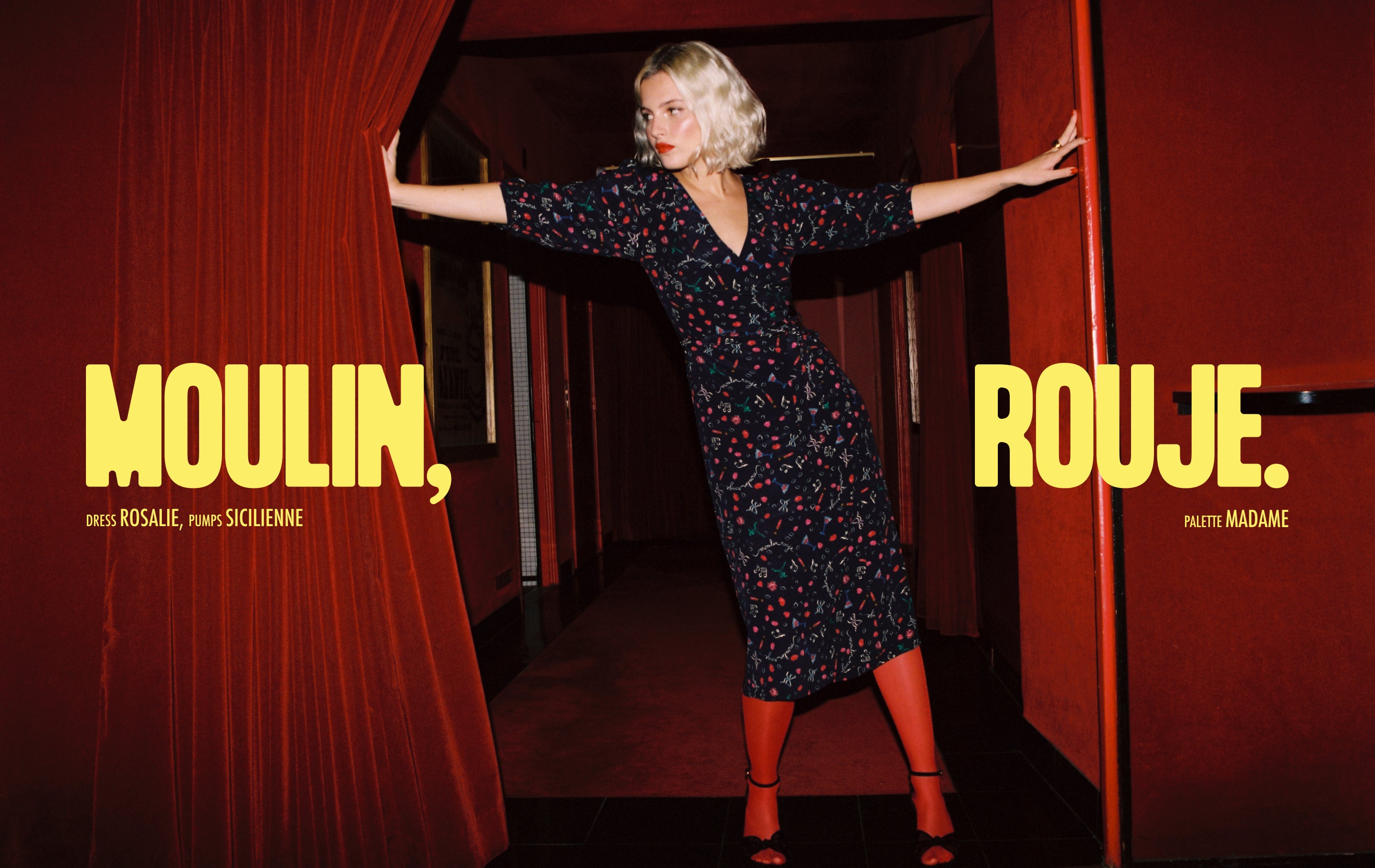 Step behind the scenes of the Moulin Rouge brand and discover an exclusive capsule collection of seven pieces, where red is the essence of the show. Glamorous and sensual patterns inspired by bold lipstick shades, designed to shine day and night. And, of course, a lipstick palette full of already iconic shades of red.