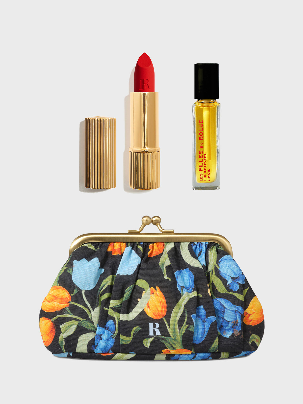 Includes a lipstick of your choice and our lip oil, a versatile duo where the oil can be used for a deep repair mask, the lipstick for a touch of glam, and together for the perfect lipgloss. All slipped into a limited edition pouch.