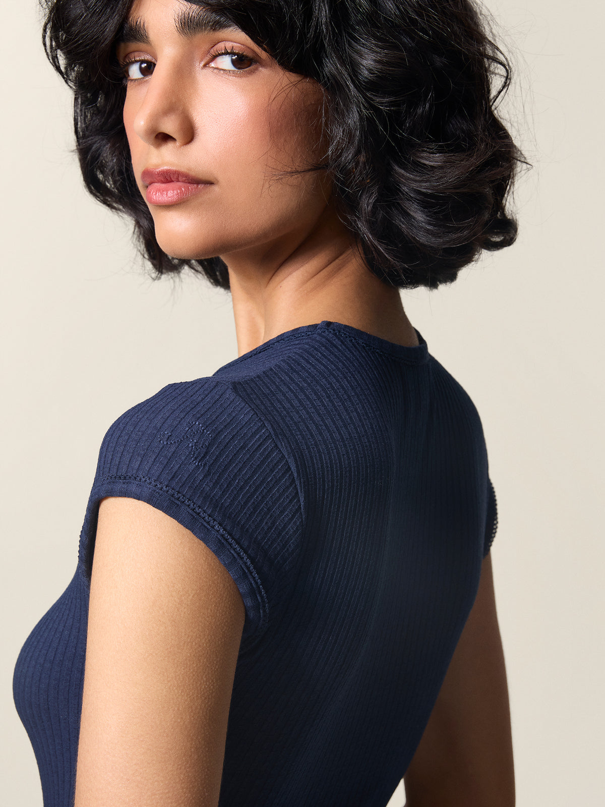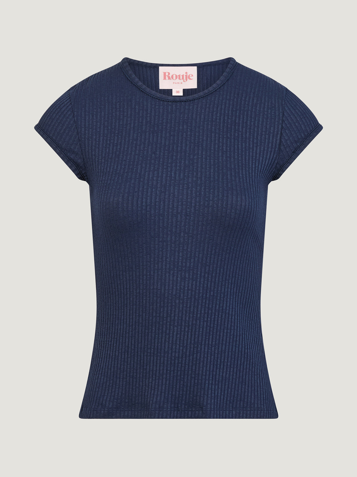• Micro manches courtes gansées ton sur ton, finition picots
