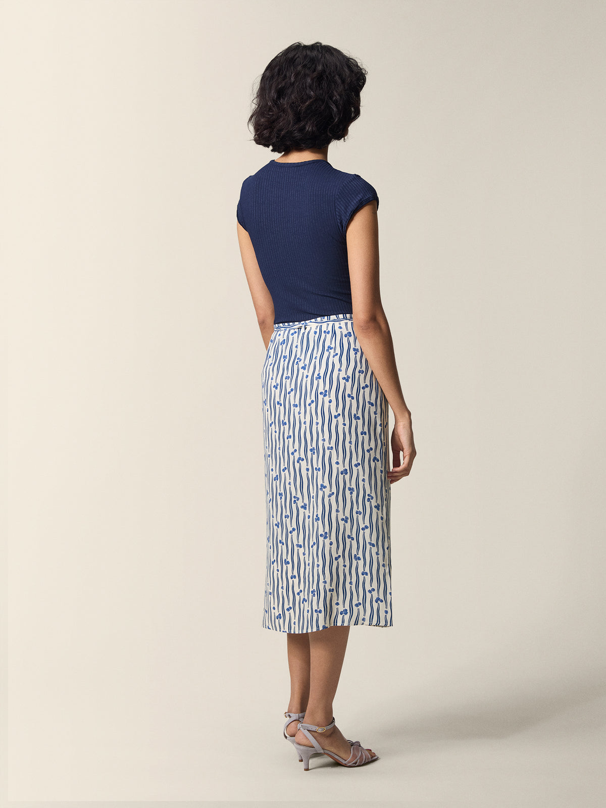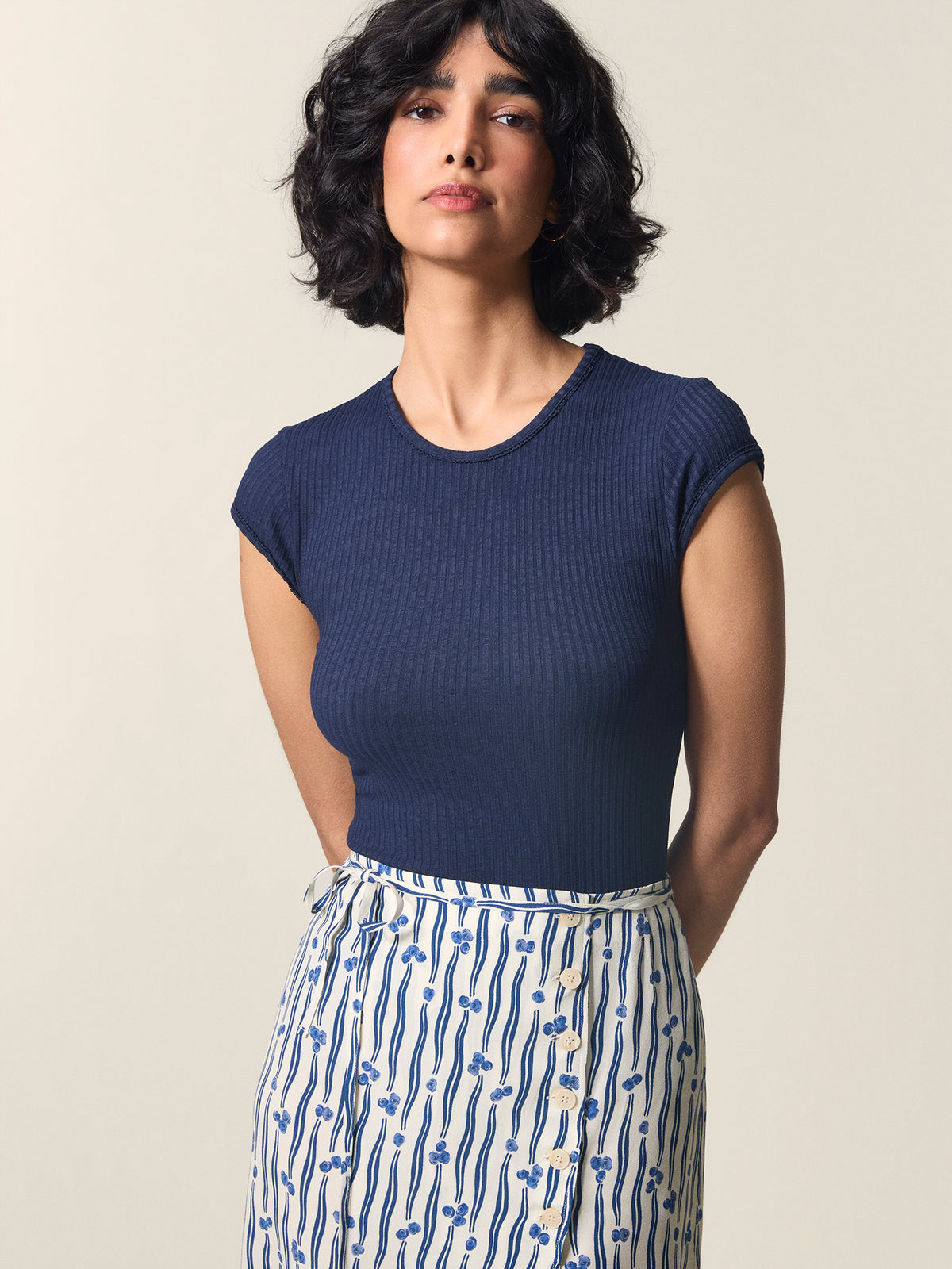 T-shirt en jersey côtelé marine