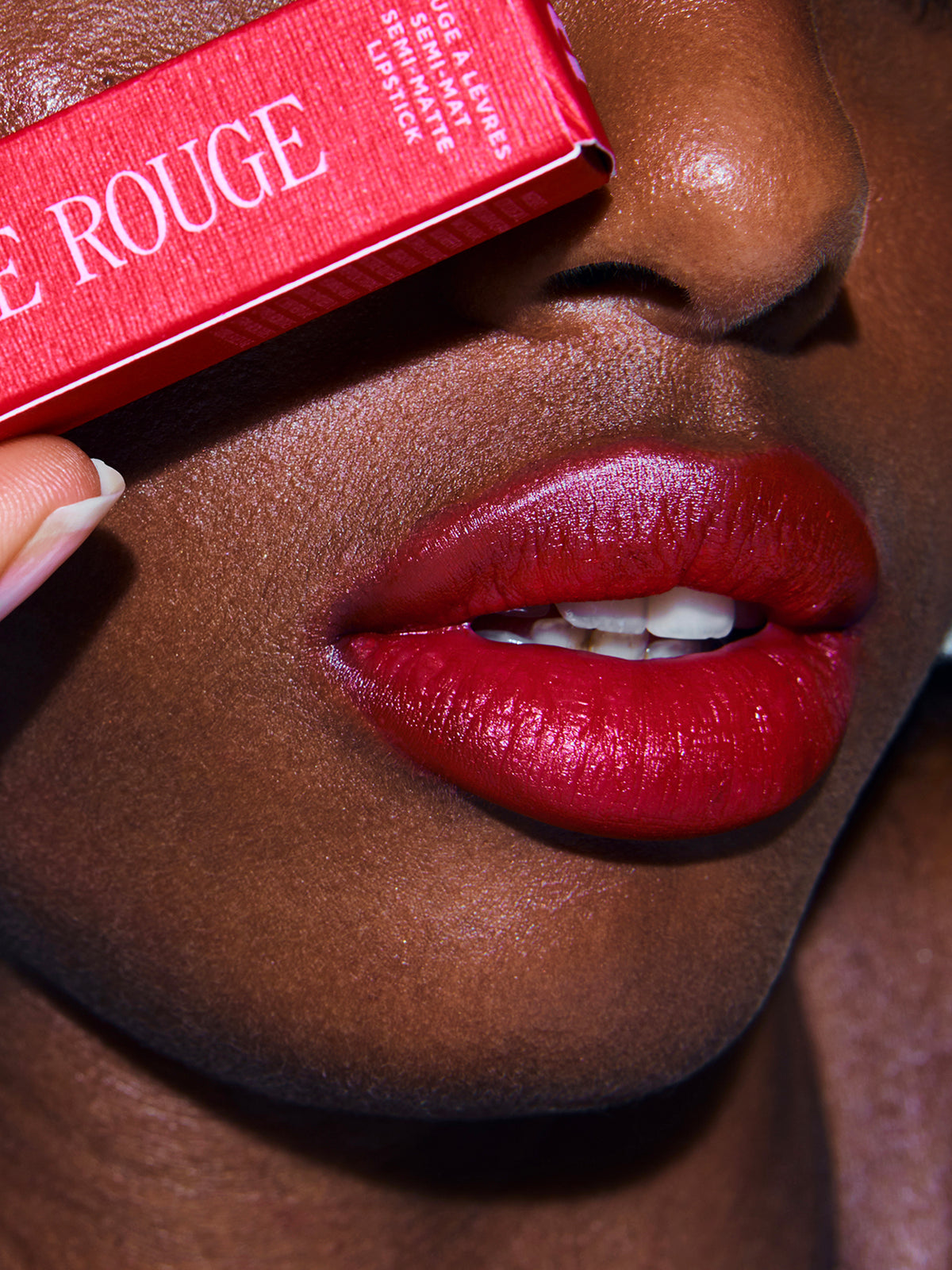 Le Rouge, notre rouge à lèvres mat iconique à la formule naturelle, glisse sur les lèvres. Grâce à ses 86% d'ingrédients d'origine naturelle, la formule est légère et la couleur intense. Disponible en six teintes iconiques parfaites pour un effet bouche mordue. La teinte Camille : un rouge bordeaux intemporel.
